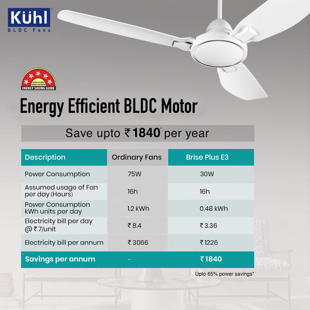 - Uses only 30-watt Electricity as Against 70–80-watt Induction Fans