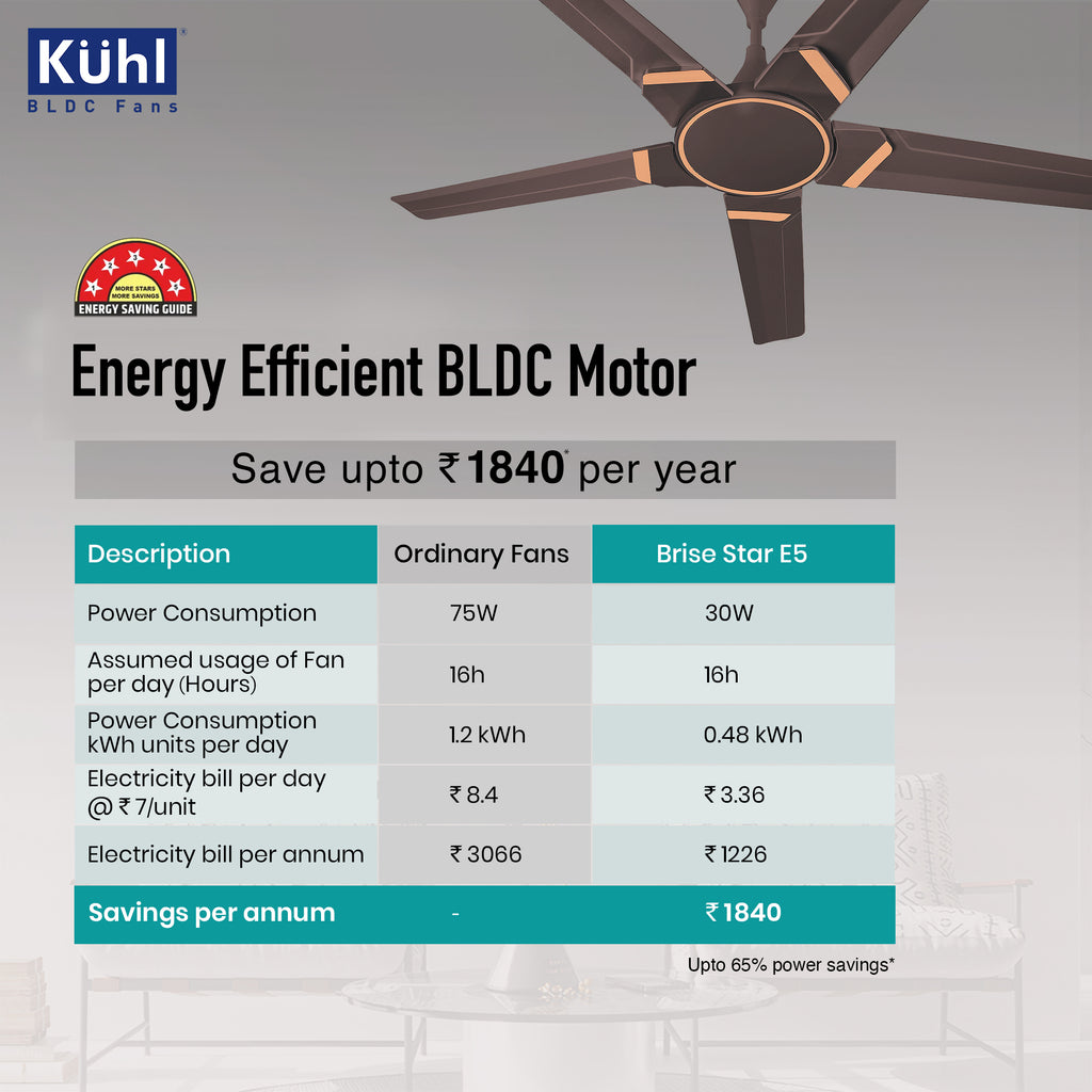 - Uses only 30-watt Electricity as Against 70–80-watt Induction Fans
