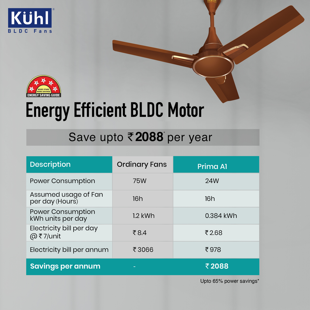 - Uses only 24/28 Watt Electricity as Against 70–80-watt Induction Fans