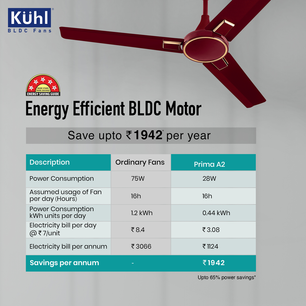 - Uses only 28-watt Electricity as Against 70–80-watt Induction Fans