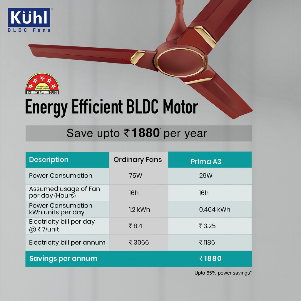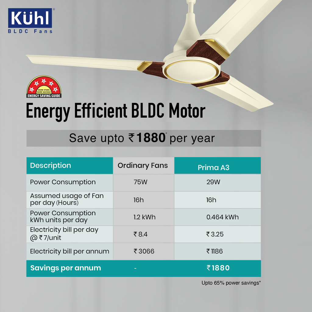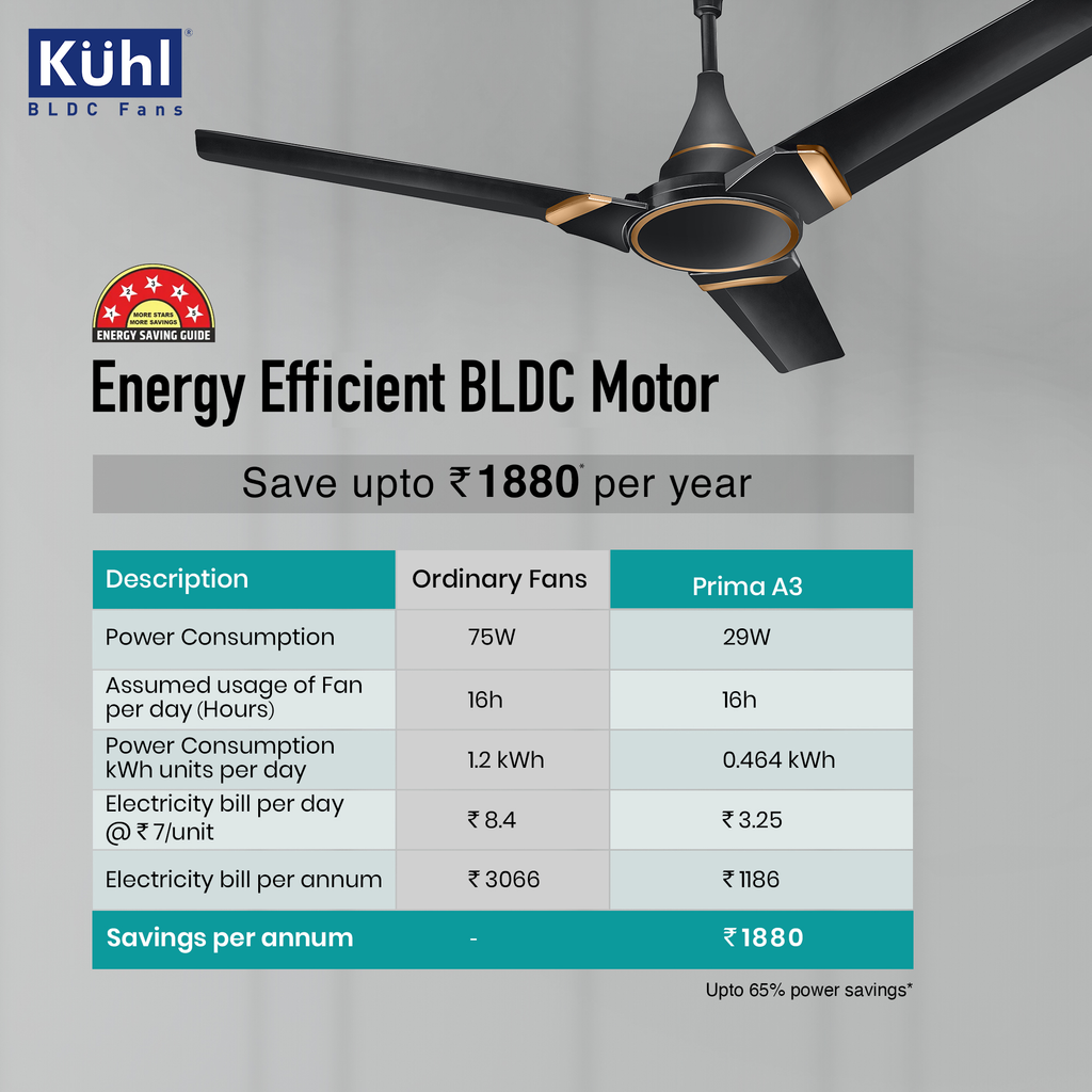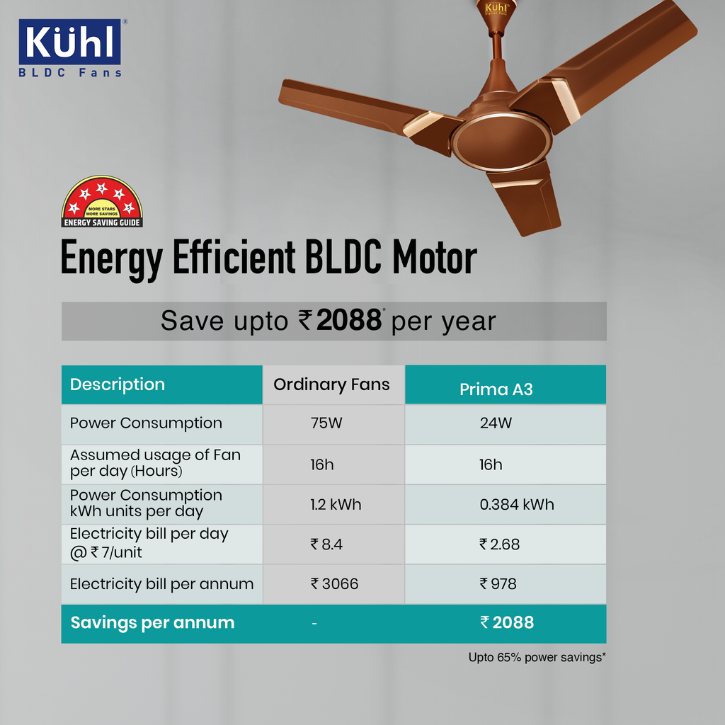 - Uses only 24/28 Watt Electricity as Against 70–80-watt Induction Fans