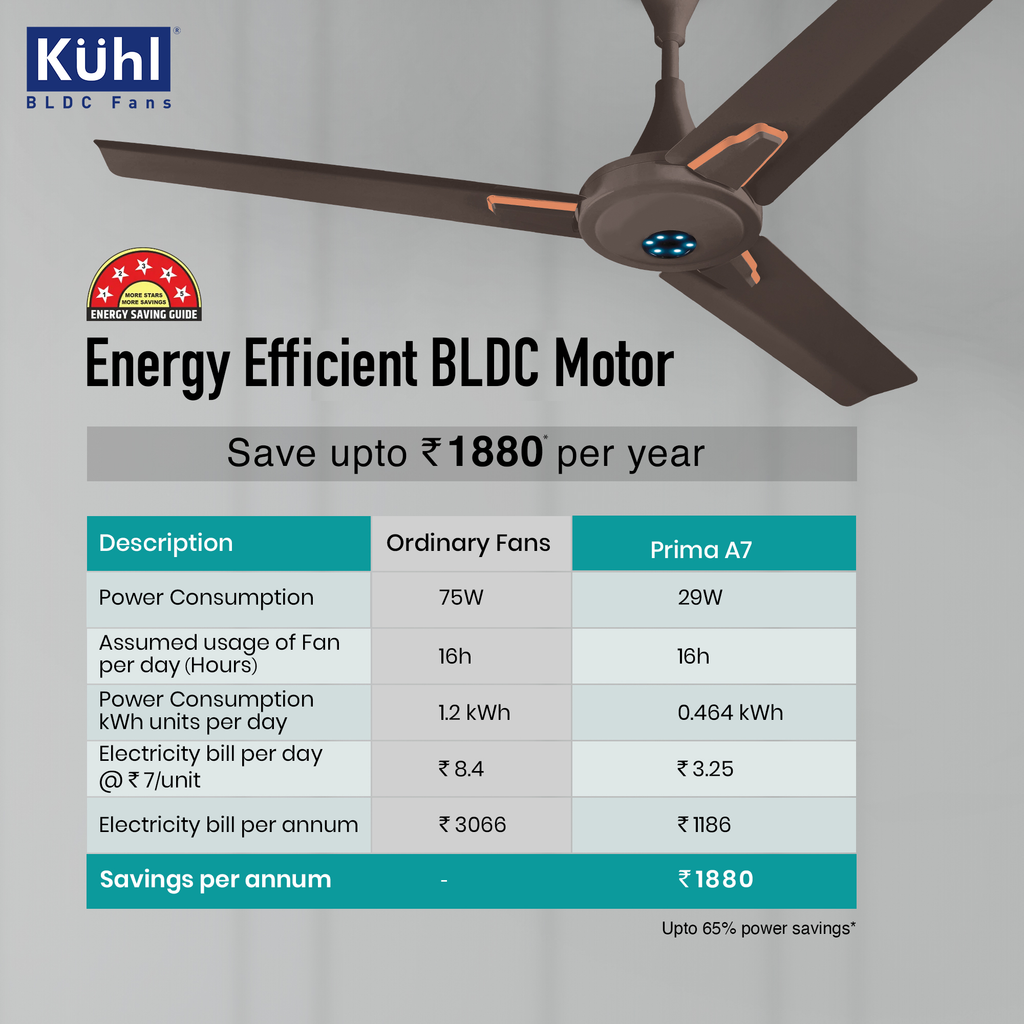 - Uses only 29 Watt Electricity as Against 70–80-watt Induction Fans