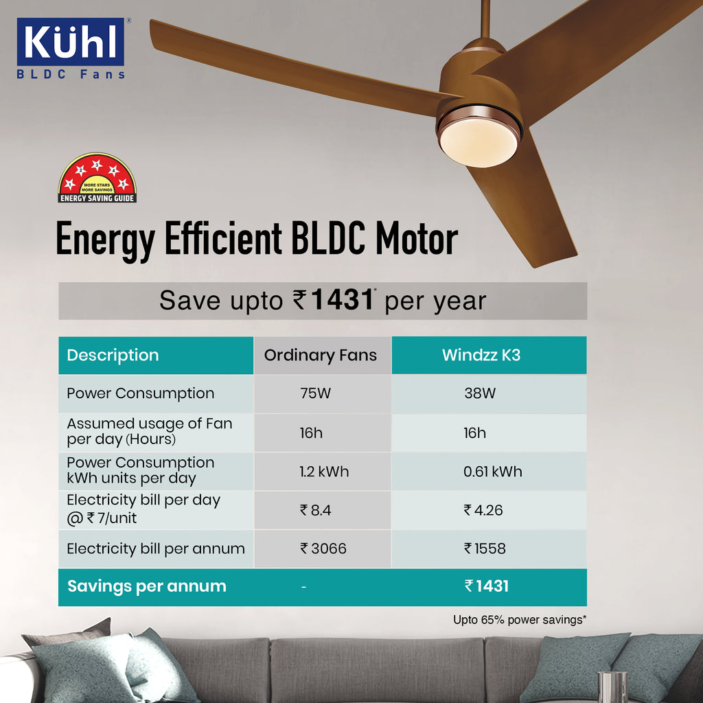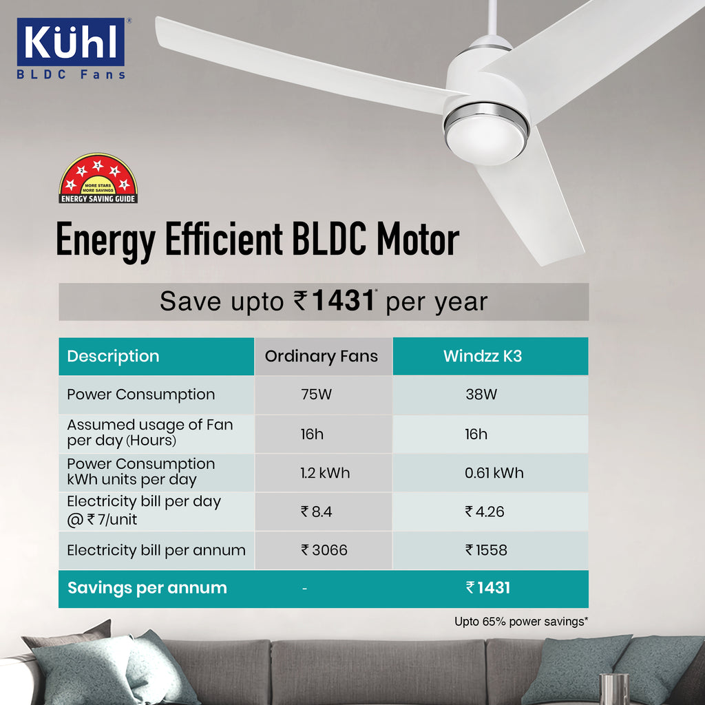 - Uses only 38-watt Electricity as Against 70–80-watt Induction Fans