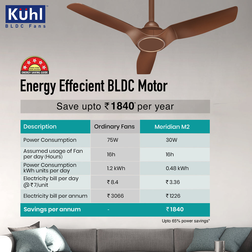 - Uses only 30 Watt Electricity as Against 70–80-watt Induction Fans
